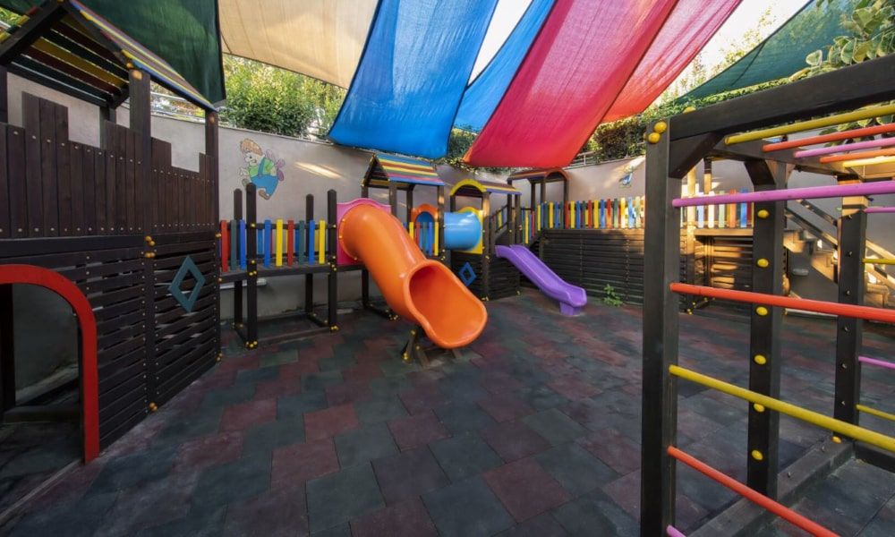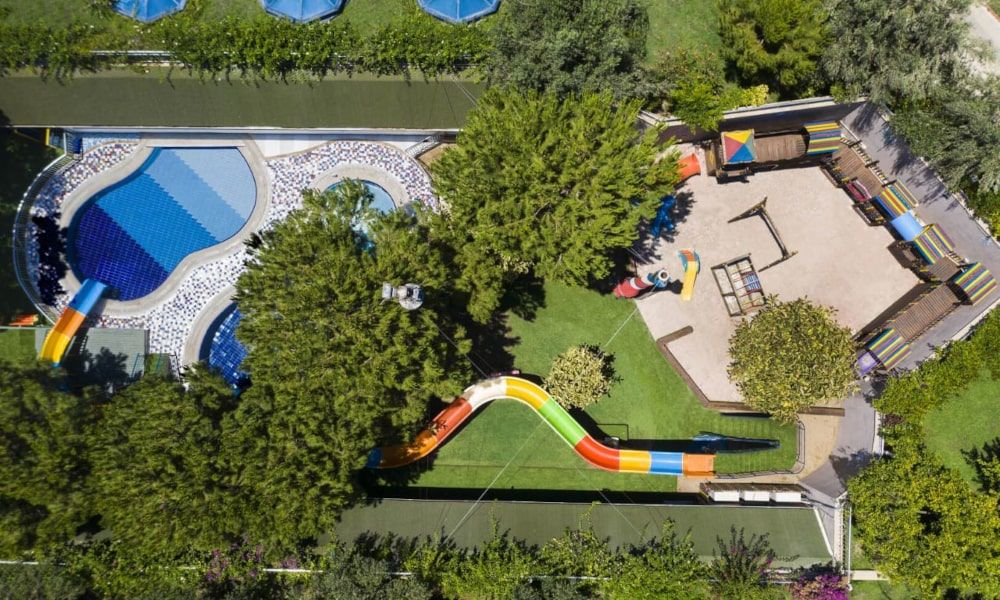 В отеле есть бассейн с 5 водными горками, а еще — детская зона с интерактивным игровым пространством, где маленькие гости могут развлекаться в тени деревьев. Работает клуб "Калли", есть услуги няни, а по территории ездят мини-поезда.
